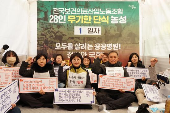 [라포르시안] 보건의료노조는 감염병 대응 공공병원 운영 정상화를 위해 노조 지도부와 코로나 전담병원 현장 대표자 28명이 오늘(4일)부터 국회 앞에서 무기한 집단 단식에 돌입한다고 밝혔다.