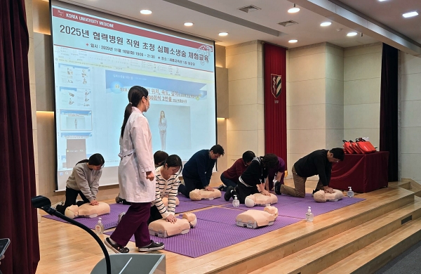 이론 강의는 윤영훈 권역응급의료센터장이 진행했으며 실습은 대한심폐소생협회 지도자 자격(KALS-I·BLS-I·KDLS-I)을 보유한 김맑음·김솔이·최재승 고대구로병원 소속 1급 응급구조사가 지도해 전문성을 높였다.